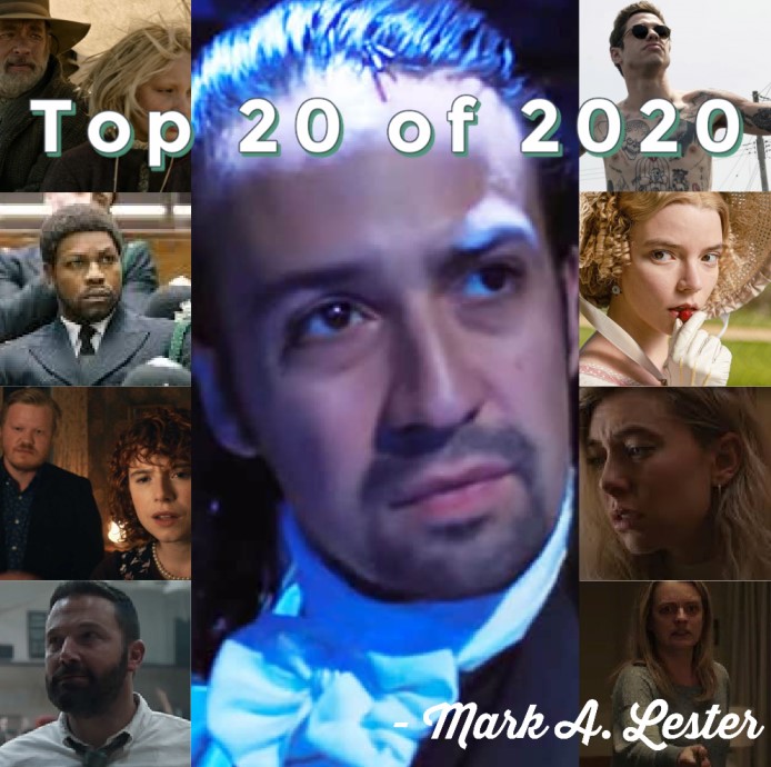 Even with 20, it was hard to leave off films like Emma., The Invisible Man, I’m Thinking of Ending Things, The King of Staten Island, The Way Back, Clouds, News of the World, and even Hamilton (even though I am not sure I would count it as a movie, I was totally a fan before it debuted on Disney Plus.)
